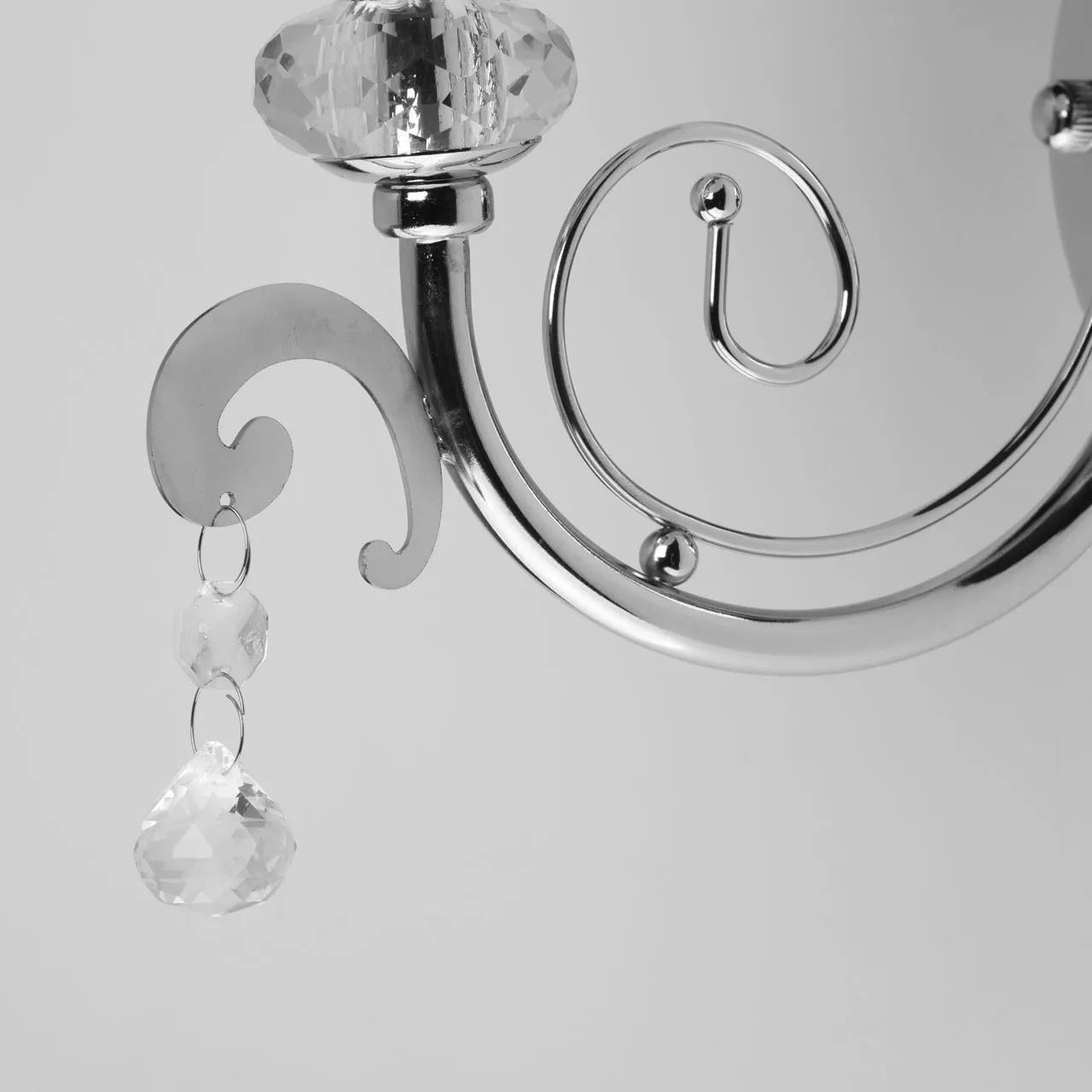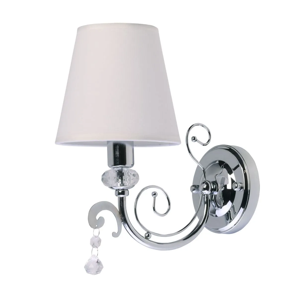 Основание/ металл/ хром Абажур/ текстиль, акрил/ белый, прозрачный Декор/ хрусталь/ прозрачный