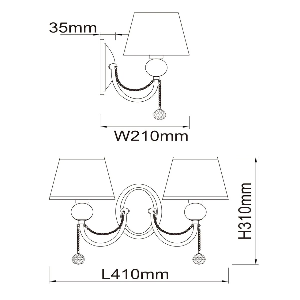 Основание/металл/ хром. Абажур/текстиль/дымчатый. Декор/акрил, хрусталь/прозрачный.