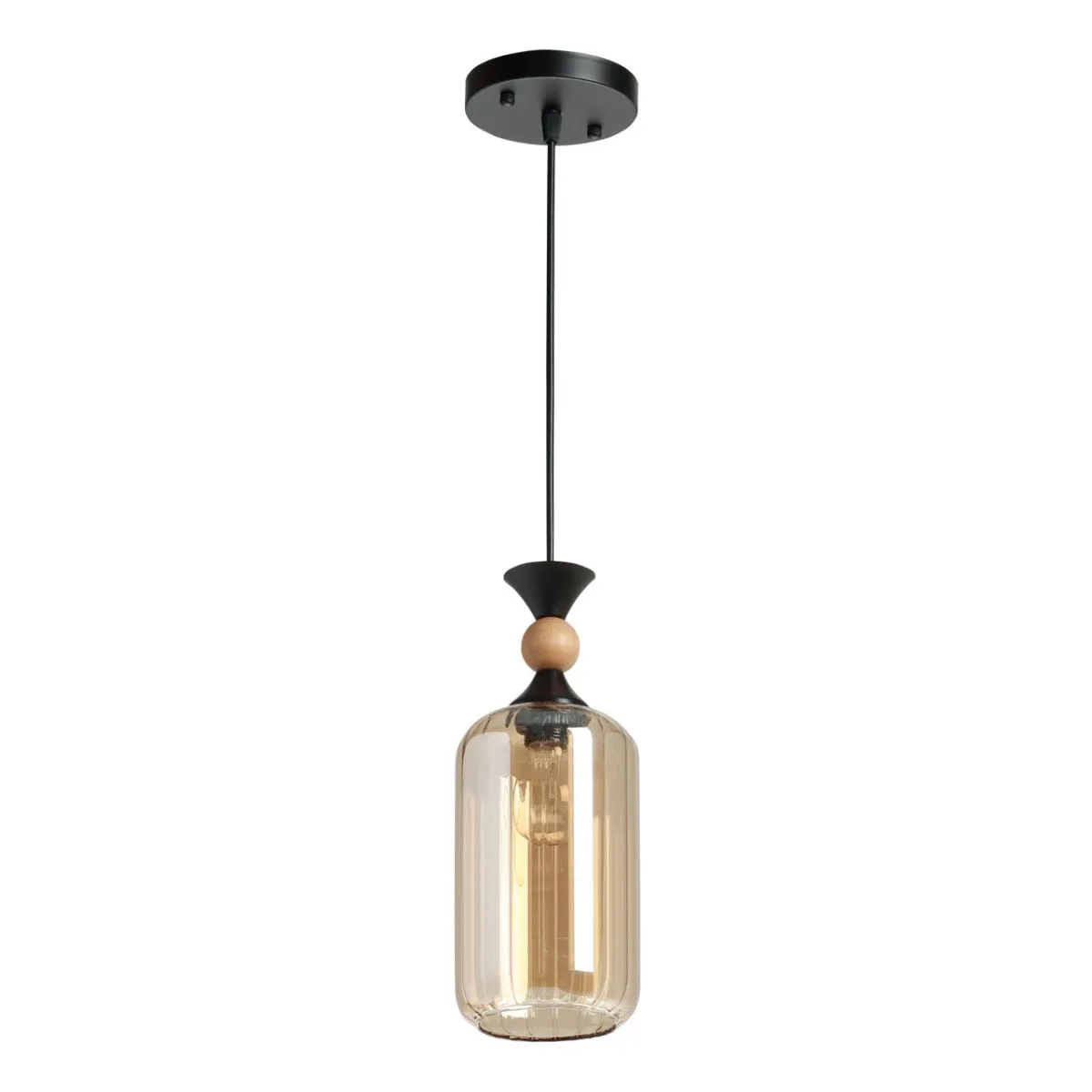 Основание/ металл/ черный Плафон/ стекло/ коньяк Декор/ дерево/ светлое