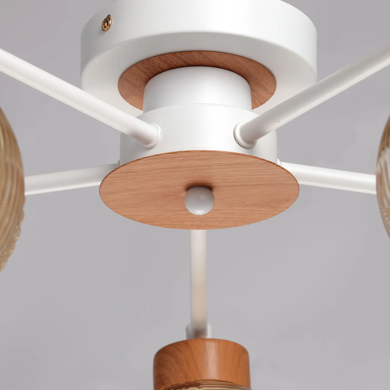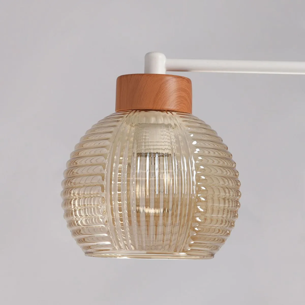Основание/ металл/ белый Плафон/ стекло/ коньяк Декор/ металл/ имитация светлого дерева