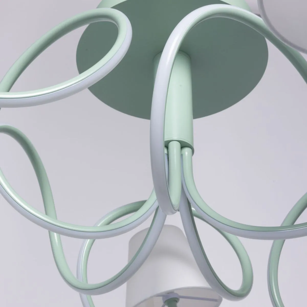 Основание/ металл/ зеленый Плафон/ сплав алюминия, силикон/ зеленый, белый Абажур/ текстиль, акрил