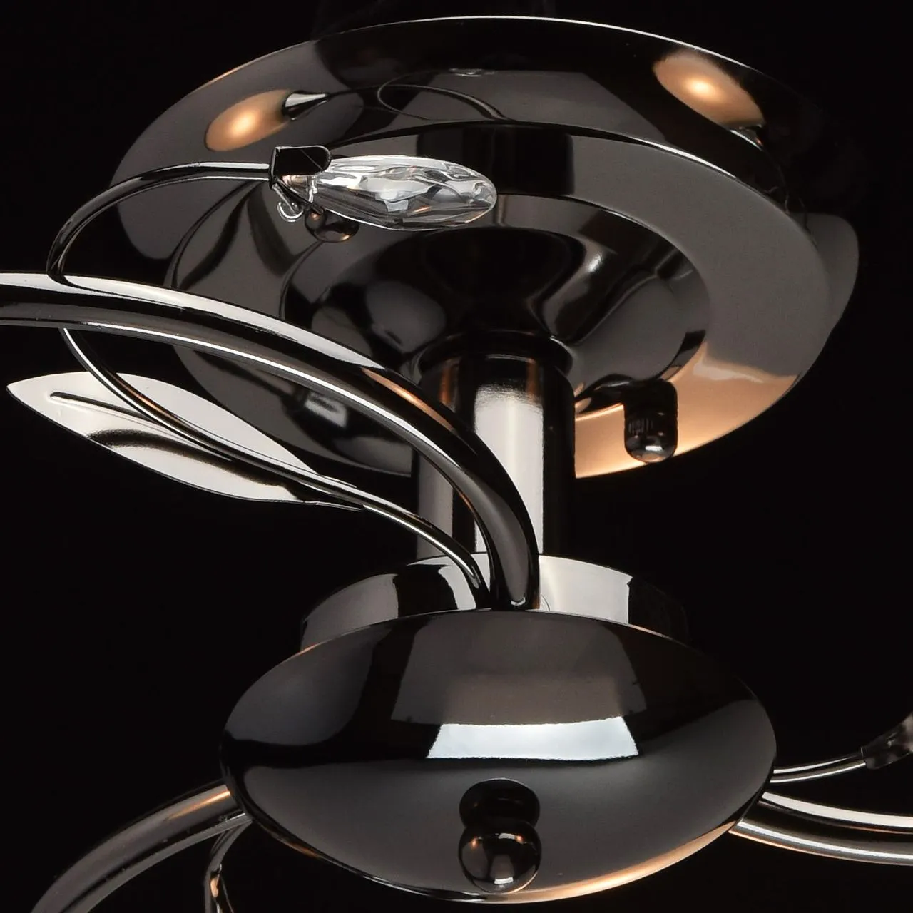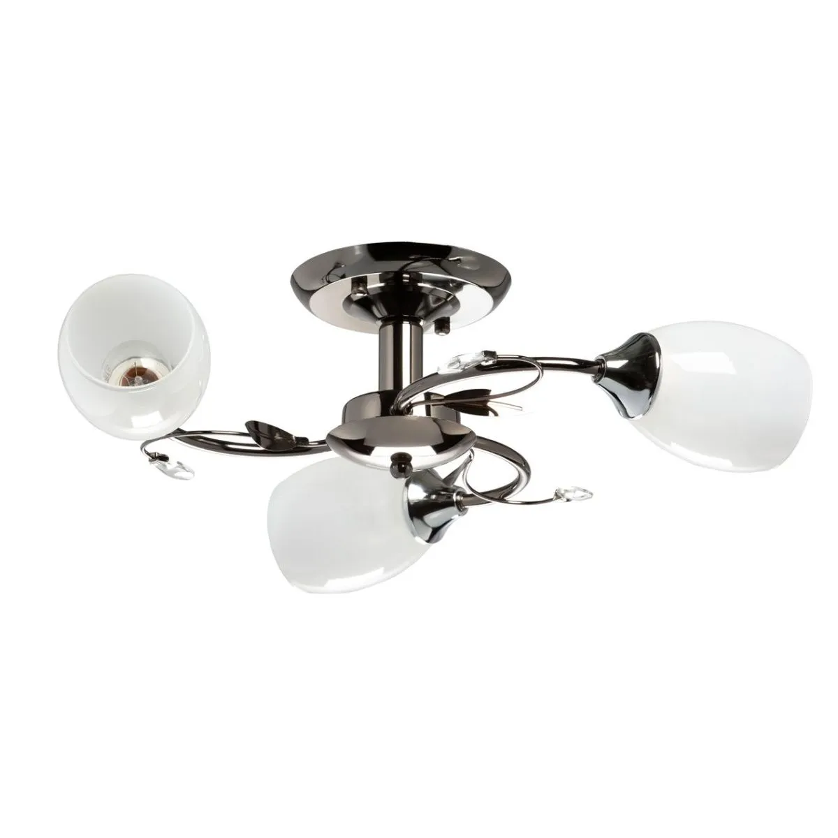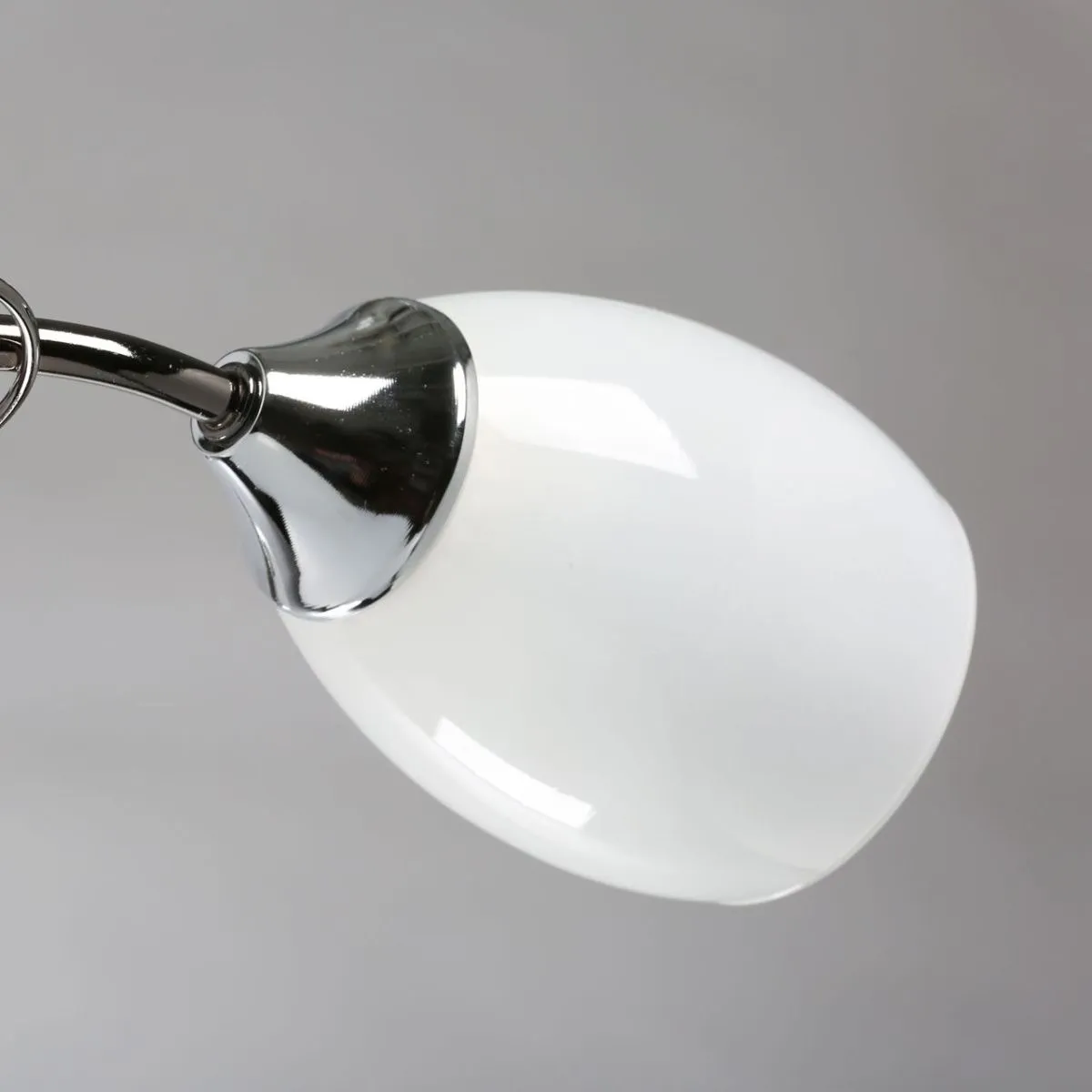 Металлическое основание цвета никеля, плафоны из матового стекла. Декор из декоративного стекла.