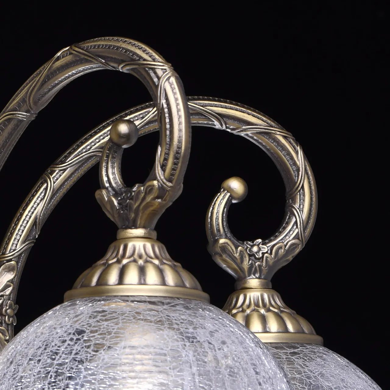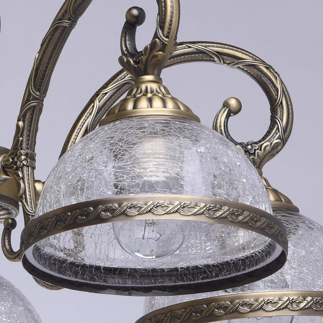 Металлическое основание цвета античной бронзы, плафоны из прозрачного льдистого стекла