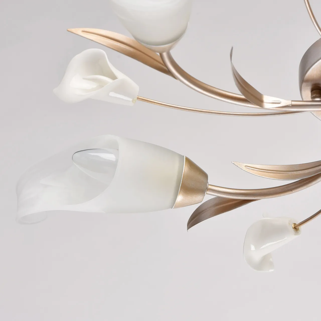 Основание из металла цвета серебра дополнено патинированием в цвет золота. Плафоны из опалового стек