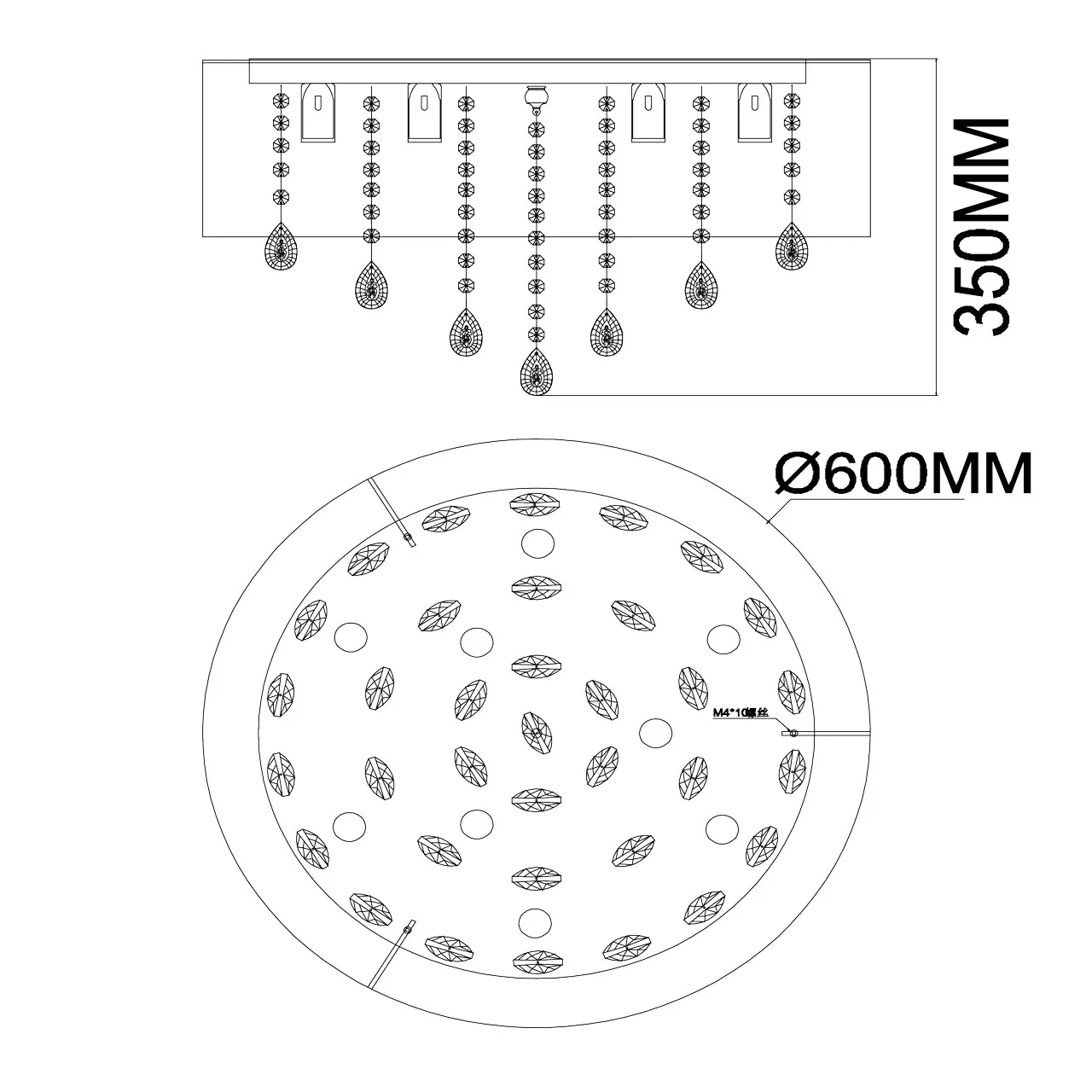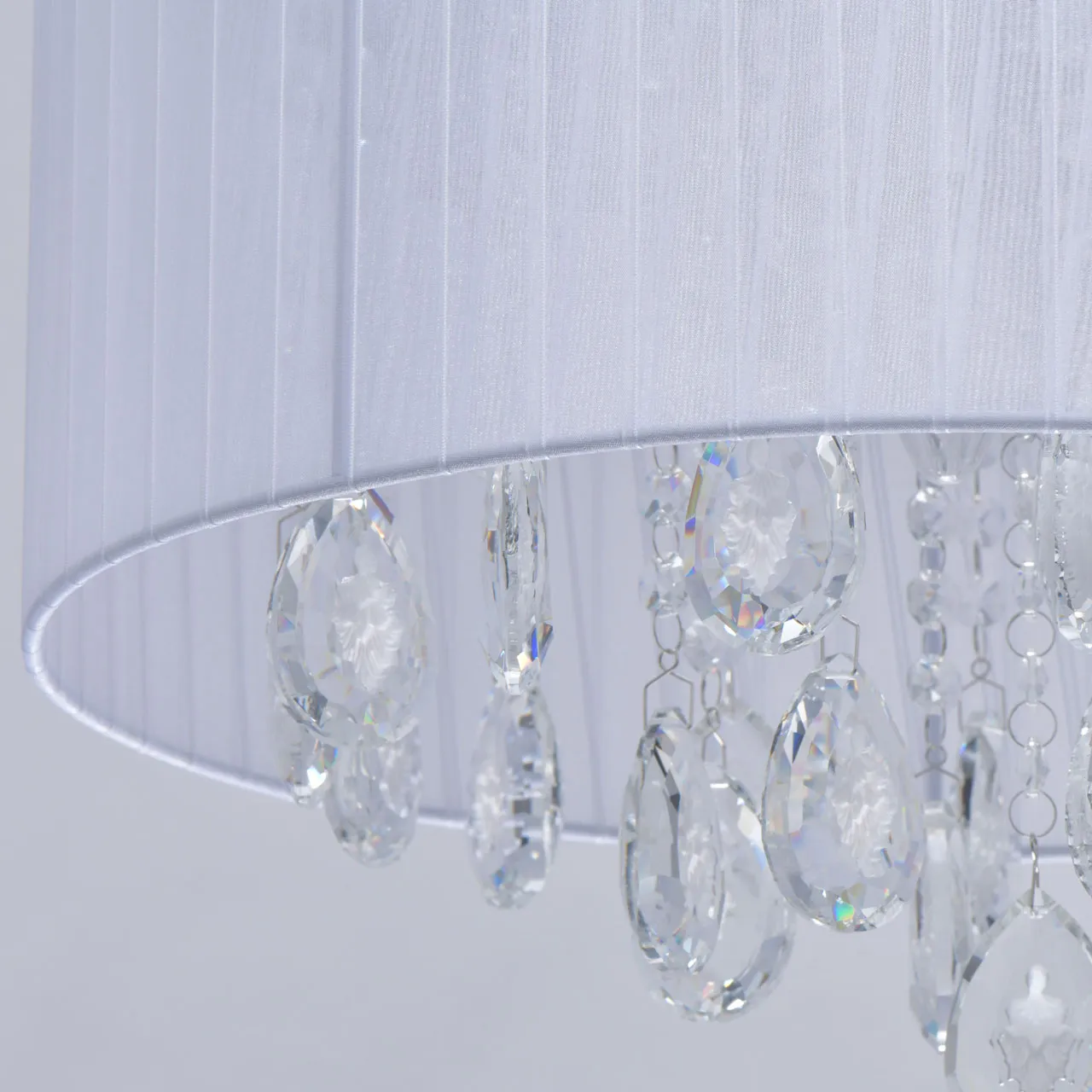 Основание/нержавеющая сталь Плафон/текстиль/белый Декор/хрусталь с резным белым орнаментом