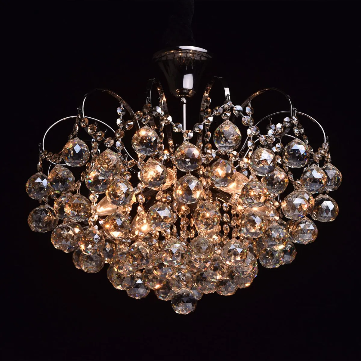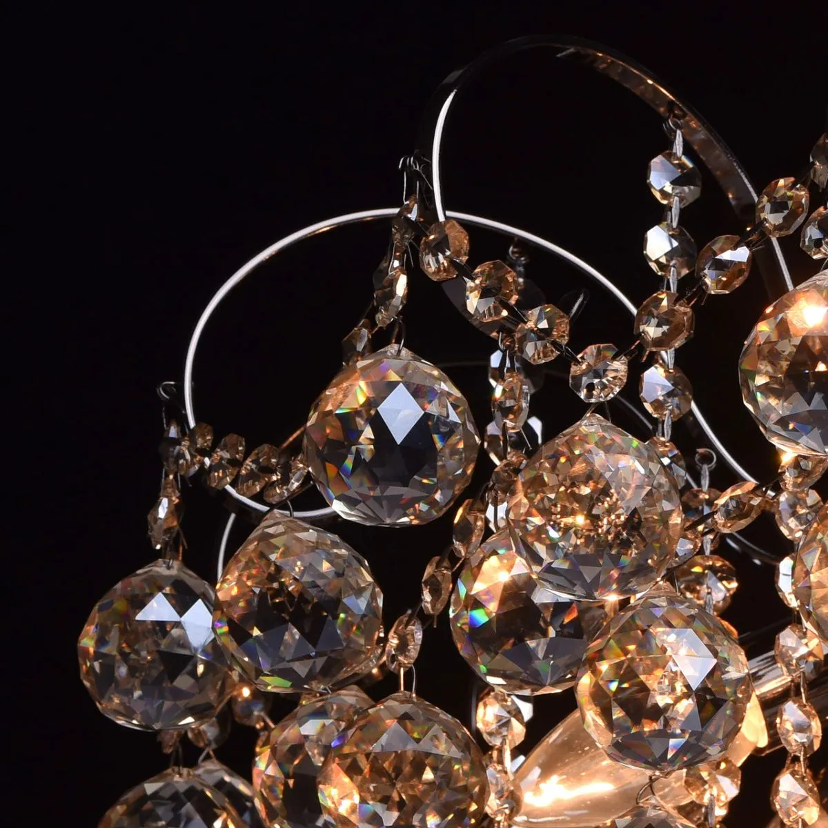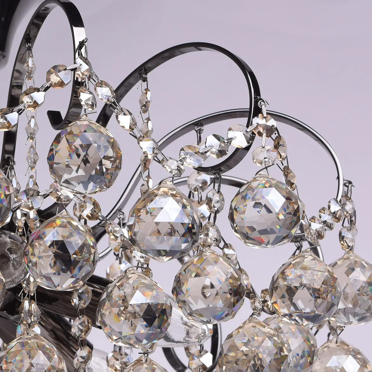 Металлическое основание цвета никеля, декоративные подвески из хрусталя цвета топаза