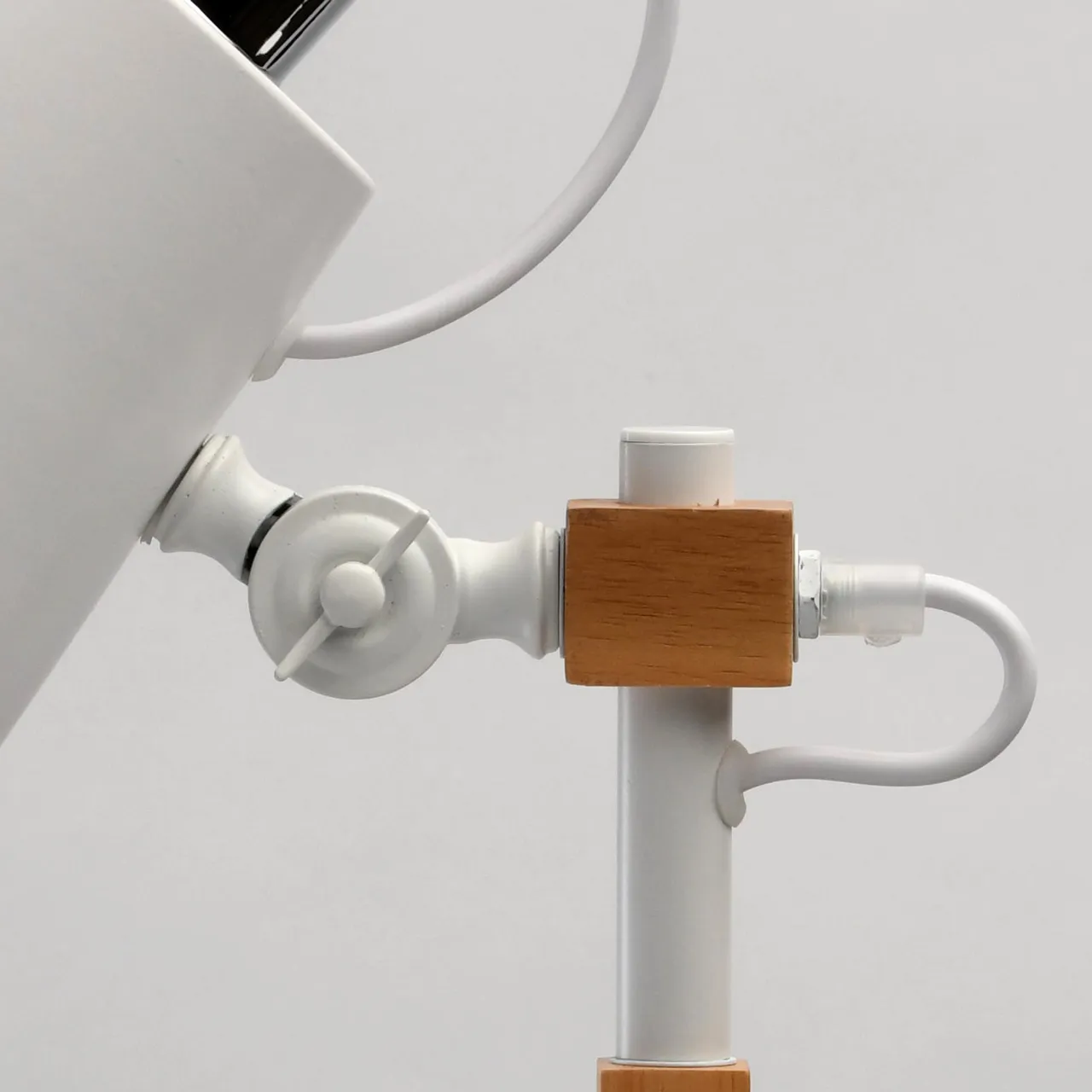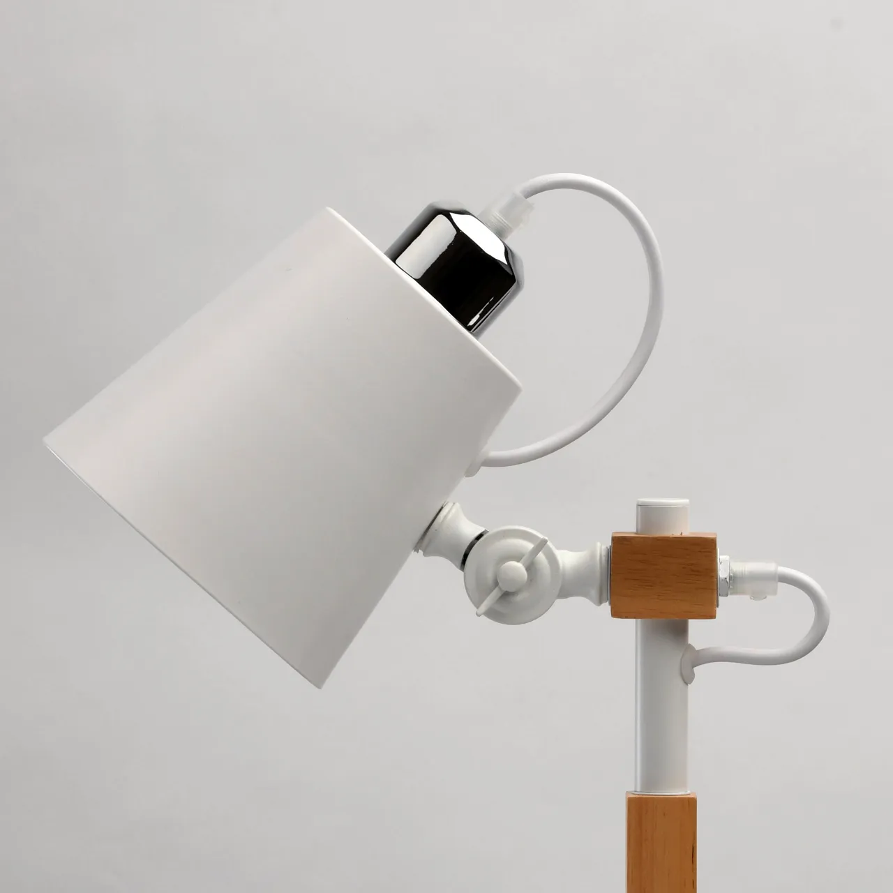 Металлические основание и плафон белого цвета. Декор - дерево гевея.