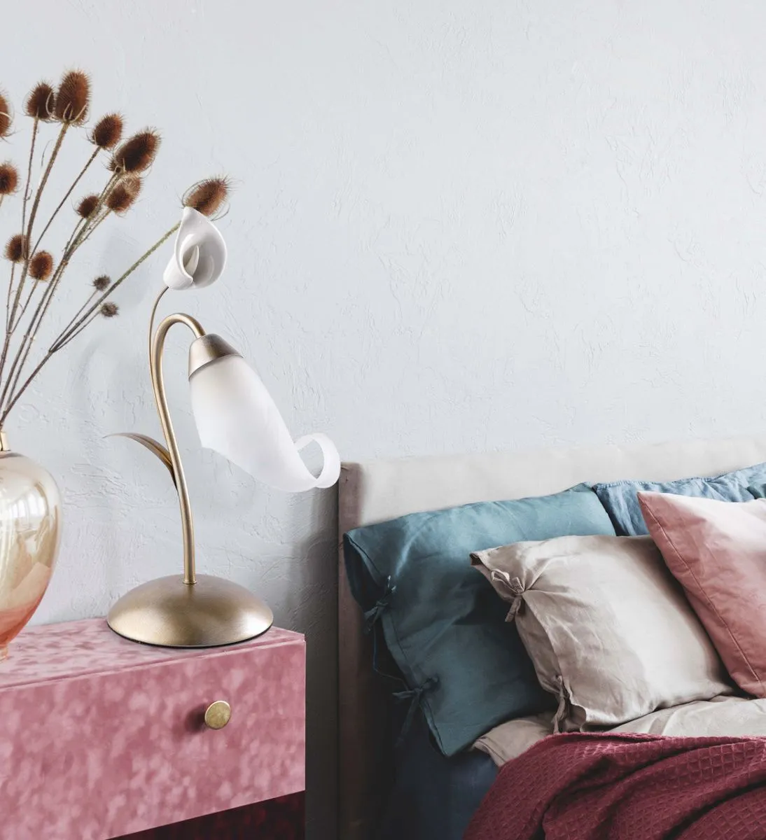 Основание/металл/перламутровое золото. Плафон/стекло/матовый белый.