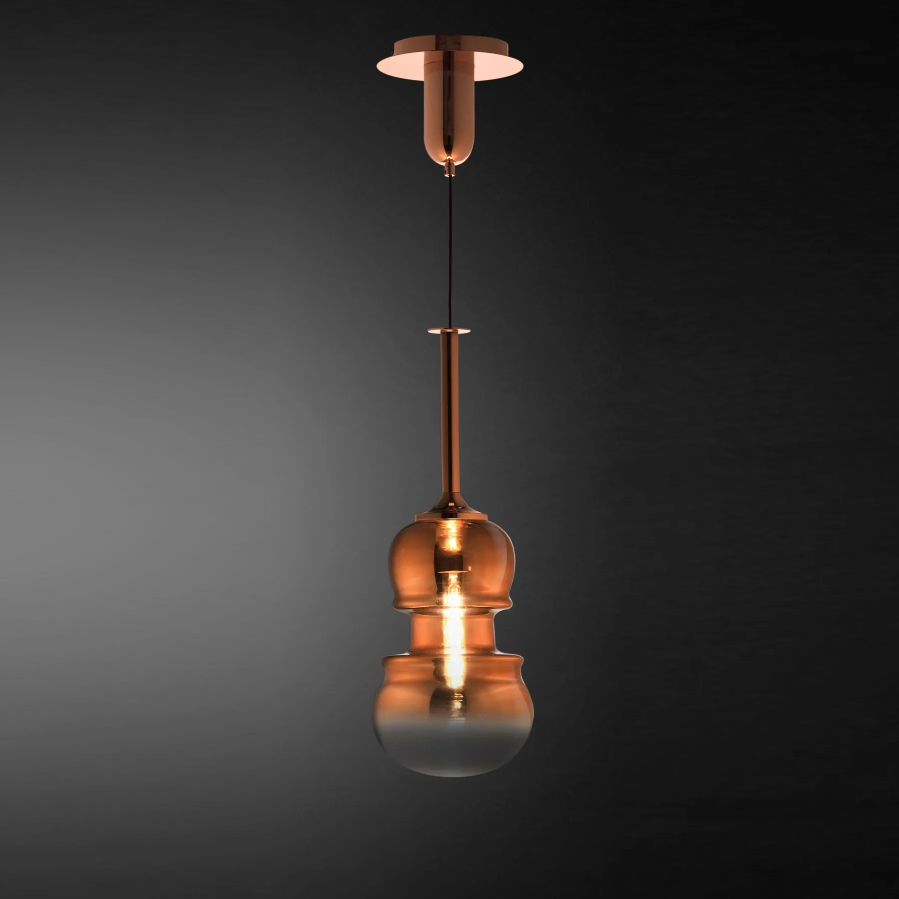 Эта коллекция подвесных светильников находится под влиянием формы песочных часов виолончели, выдутых из полупрозрачного стекла с элегантными оттенками меди, бронзы или серого графита. Доступные в трех размерах, они является подходящим вариантом для того, чтобы привнести безмятежность классической музыки в пространство гостиной или столовой, создавая атмосферу приватности и уюта.